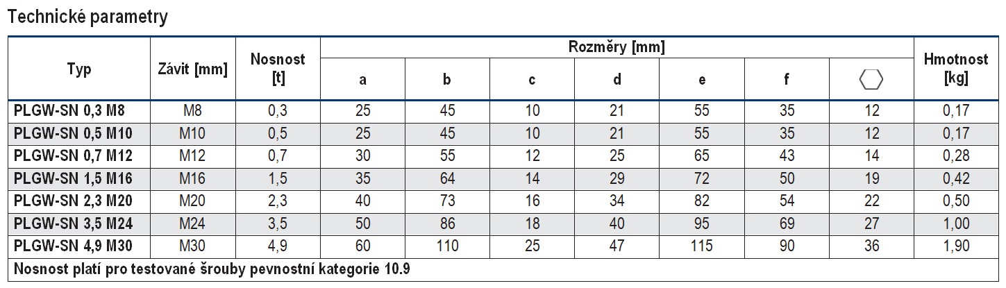 Úvod > Vázací body > Vázací body šroubovací > Otočná matice s okem typ PLGW-SN